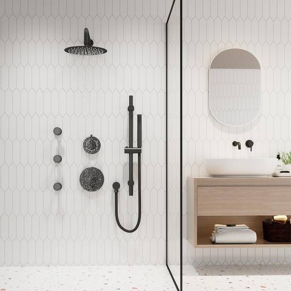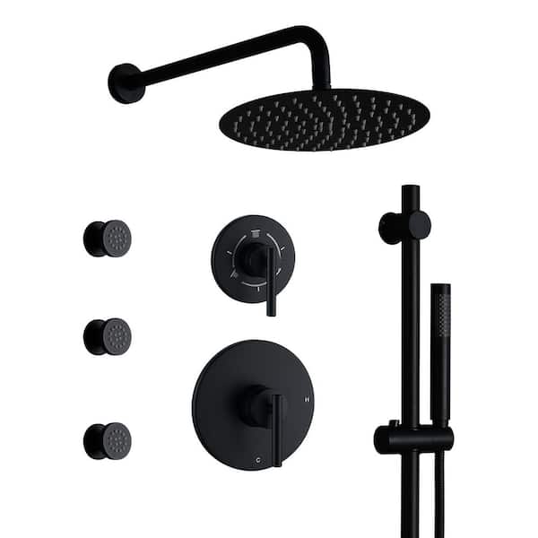 1-Spray 10 in. Dual Shower Head Wall Mount Fixed and Handheld Shower Head with Side Jets Sprayer 2.5 GPM in Matte Black