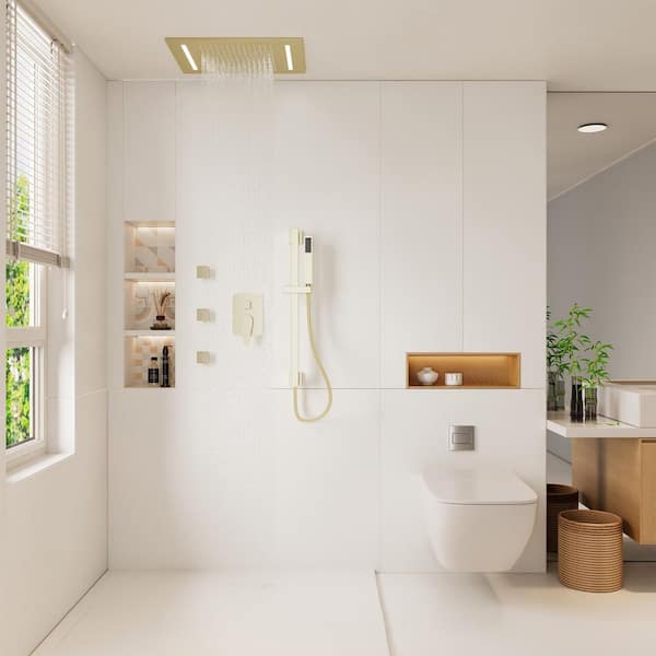 1-Spray 20" Dual Shower Head Ceiling Mount Fixed and Handheld Shower Head with Side Sprayers 2.5 GPM in Brushed Gold
