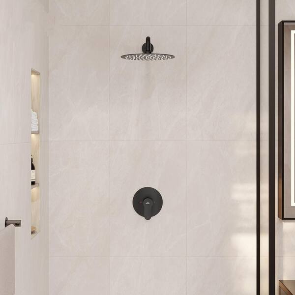 1-Spray Patterns with 1.8 GPM 10 in. Wall Mount Round Fixed Shower Head in Matte Black