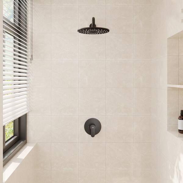 1-Spray Patterns with 1.8 GPM 10 in. Wall Mount Shower System Fixed Shower Head in Matte Black