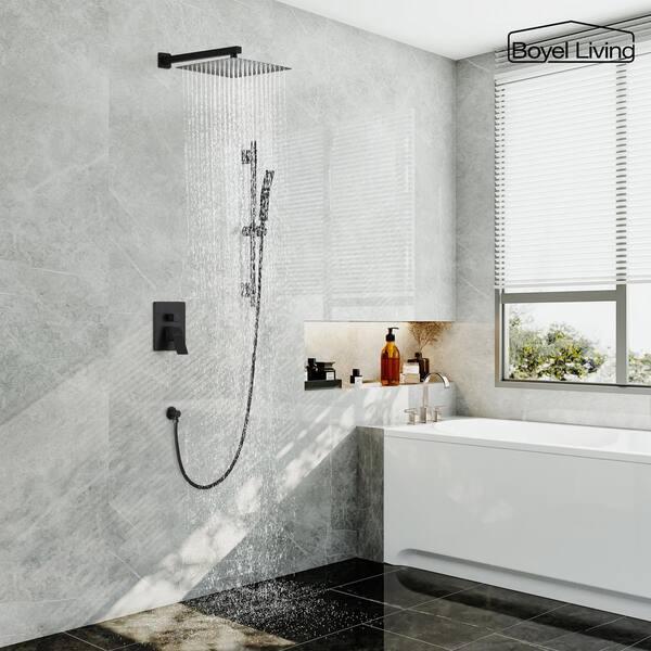 1-Spray Patterns with 2.5 GPM 12 in. Wall Mount Dual Shower Heads with Pressure Balance Valve in Matte Black