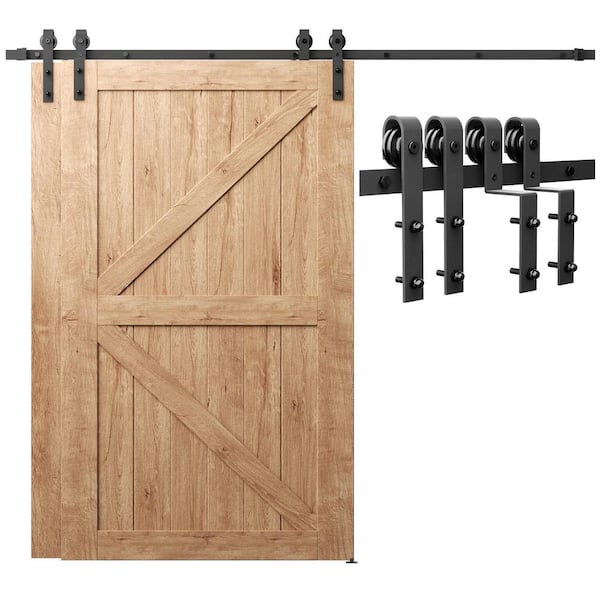 10 ft./120 in. Double Track Bypass Sliding Barn Door Track and Hardware Kit with J-Shape Hanger for Double Doors