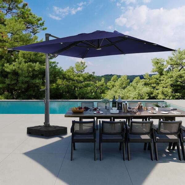 10 ft 360° Rotation Square Cantilever Patio Umbrella with BaseandLED Light in Navy Blue