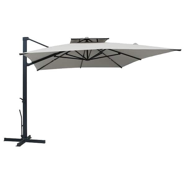 10 x 10 ft. 360° Rotation Double Top Rectangular Cantilever Patio Umbrella in Gray