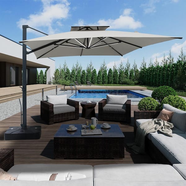 10 x 13 ft. 360° Rotation Rectangular Cantilever Patio Umbrella with Base and Light in Gray