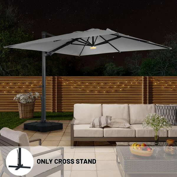 10x10 ft. 360° Rotation Square Cantilever Patio Umbrella with Bluetooth Speaker and LED Light in Gray