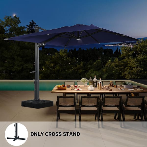 10x10 ft. 360°Rotation Square Cantilever Patio Umbrella with LED Light in Navy Blue