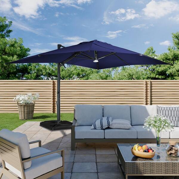 10x13 ft. 360° Rotation Cantilever Patio Umbrella with BaseandBT in Navy Blue