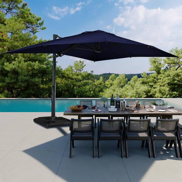 10x13 ft. 360° Rotation Cantilever Patio Umbrella with BaseandLED Light in Navy Blue