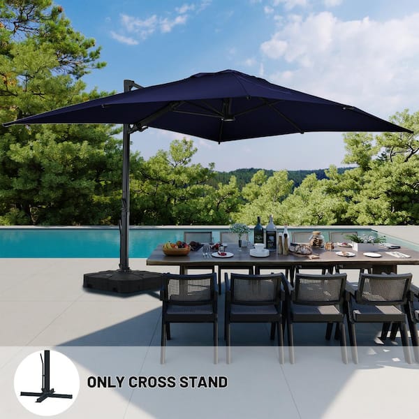 10x13 ft. 360° Rotation Square Cantilever Patio Umbrella with LED Light in Navy Blue