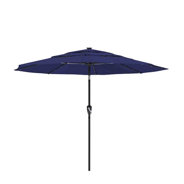 11 ft. Aluminum Triple Top Vented Designed Tilt Outdoor Market Patio Umbrella with LED Lights in Navy