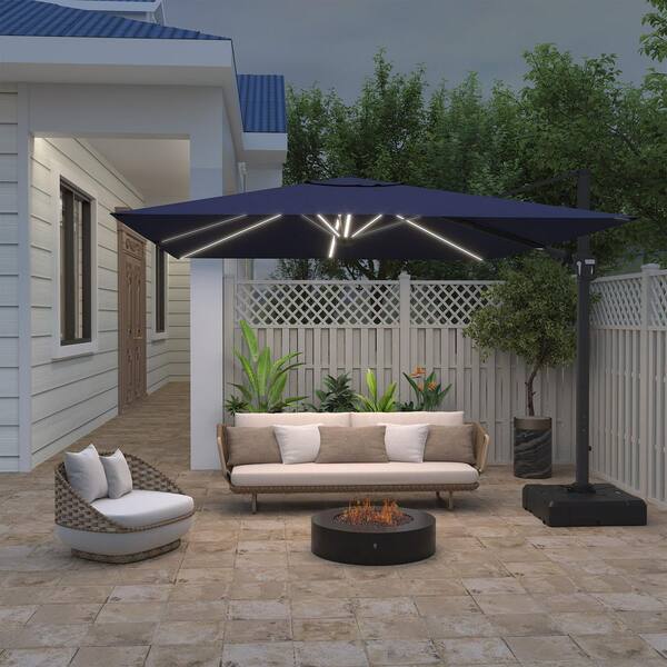 11 ft. Square Cantilever Patio Umbrella with LED Light in Navy Blue(with Base)