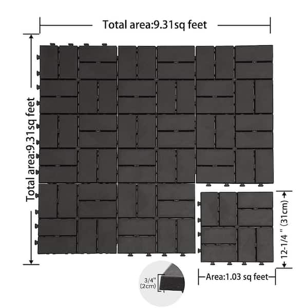 12 in. x 12 in. Square Composite Decking Tiles, 4-Slat Plastic Outdoor Flooring Tile All Weather(Gray, Pack of 36)