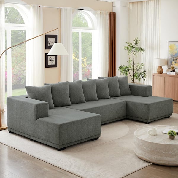 128 in. Wide Straight Arm Chenille U-Shaped Minimalist Style Modular Sectional Sofa Set in. Gray with Supporting Foot