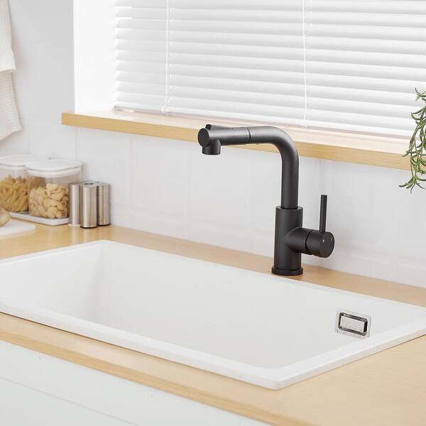 2-Spray Patterns Single Handle Stainless-Steel Pull-Out Sprayer Kitchen Faucet with Water Supply Hoses in Matte Black