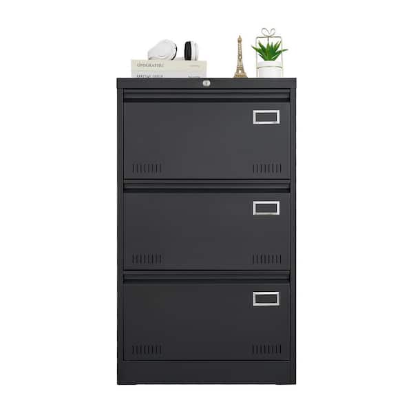 3-Drawer Black Metal 23 in. W Lateral File Cabinet with Lock