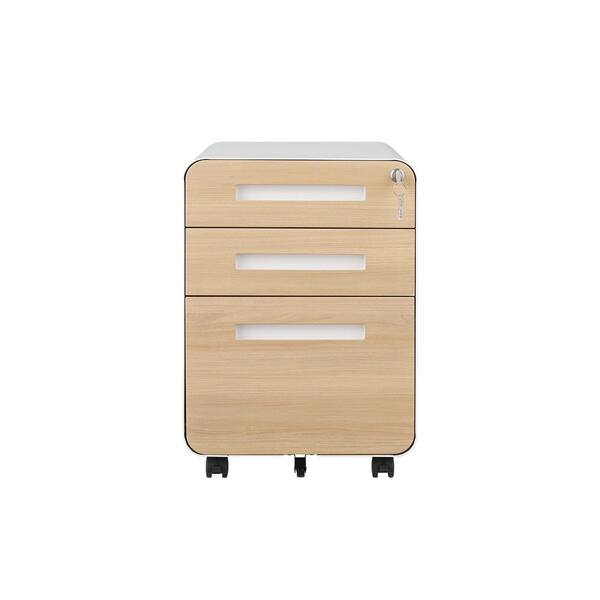 3-Drawer White&Brown Metal 15.75 in. W Lateral Mobile File Cabinet with Lock