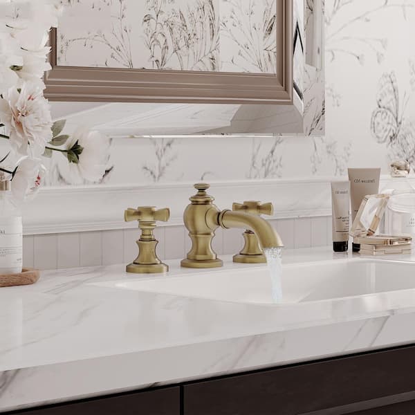 3-Hole 8 in. Widespread 2 Handle Bathroom Sink Faucet with Pop-up Drain in Brushed Gold