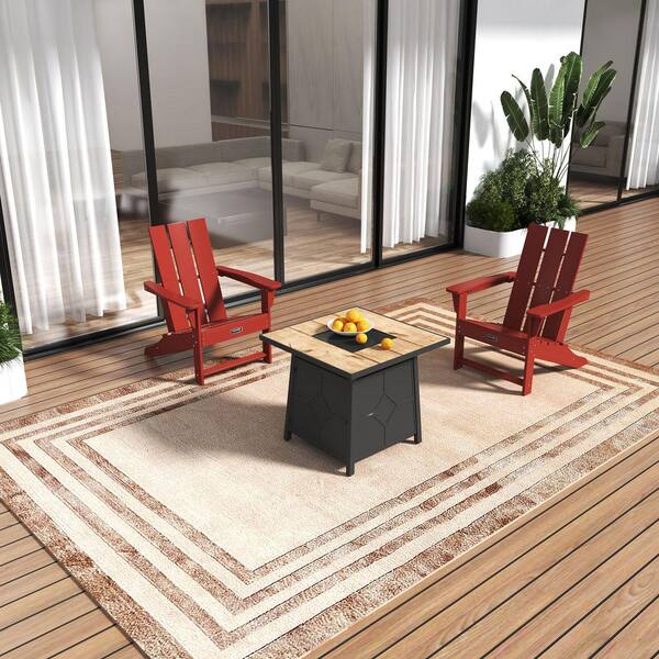 3-Piece Plastic HDPE Adirondack Chair Patio Conversation Seating Set, 28 in. Square Fire Pit with Waterproof Cover