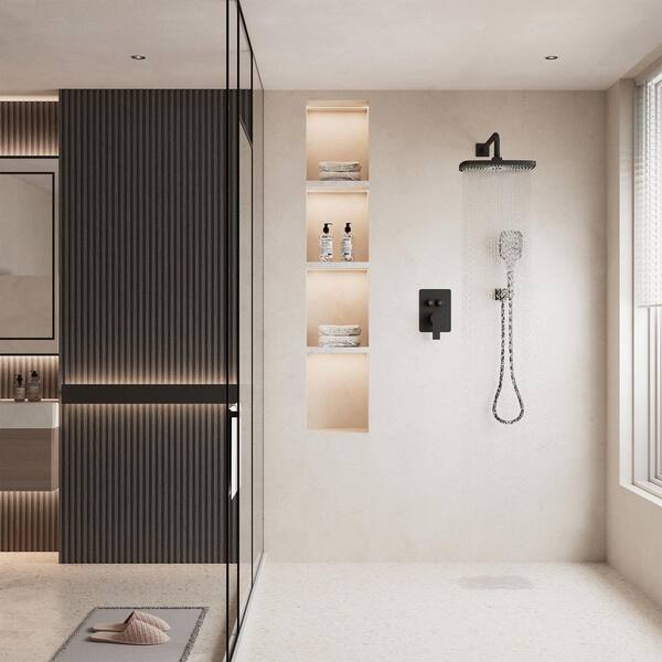 3-Spray 12 x 8 in. Rectangular Dual Shower Head Wall Mount Fixed and Handheld Shower Head 2.5 GPM in Matte Black