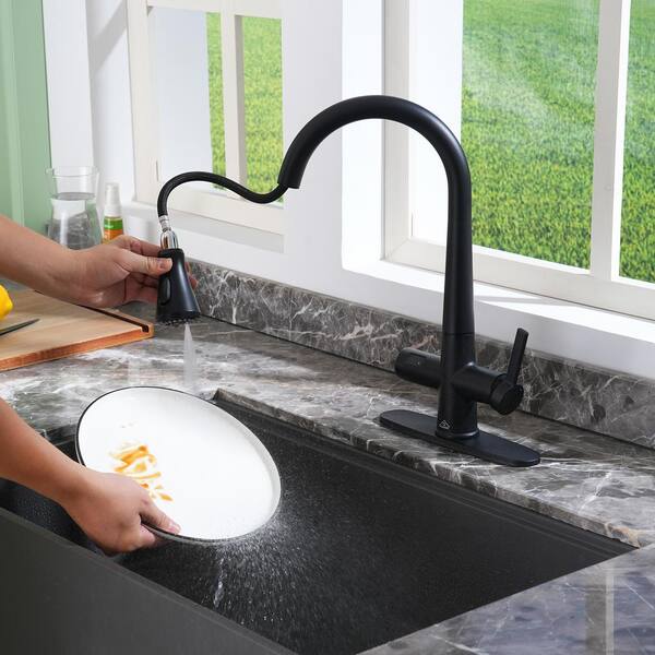 3-Spray Patterns Single Handle Pull Down Sprayer Kitchen Faucet with Deckplate and Water Supply Hoses in Matte Black