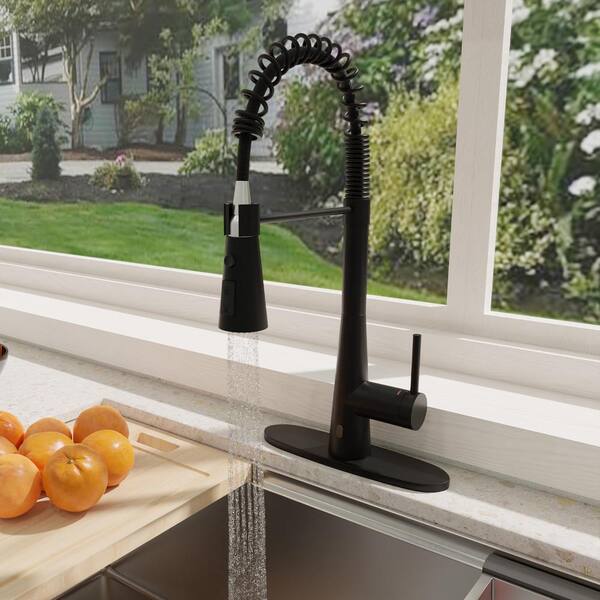 3-Spray Patterns Single Handle Touchless 1.8 GPM Pull Down Sprayer Kitchen Faucet with Deckplate Included in Matte Black