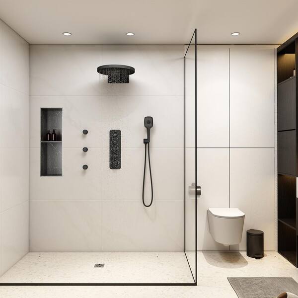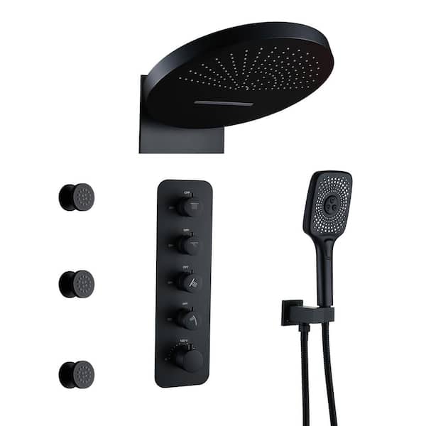 3-Spray Thermostatic Dual Shower Head Wall Mount Fixed and Handheld Shower Head 2.5 GPM with Body Spray in Matte Black