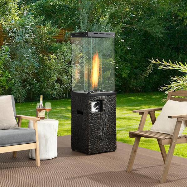 40,000 BTU 360-Degree Fire View Terrafab Base with Glass Top Liquid Propane Patio Heater, Black and Grey