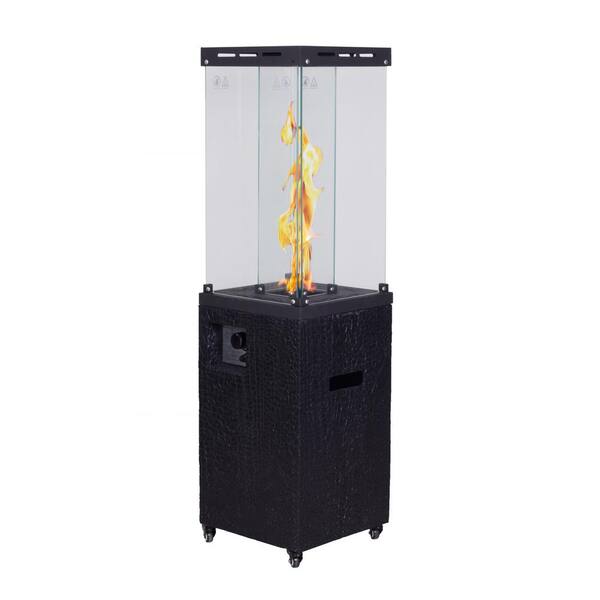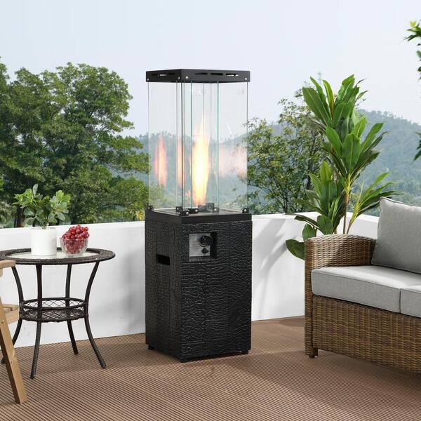 40,000 BTU 360-Degree Fire View Terrafab Base with Windproof Glass Top Liquid Propane Patio Heater, Pitch-Dark