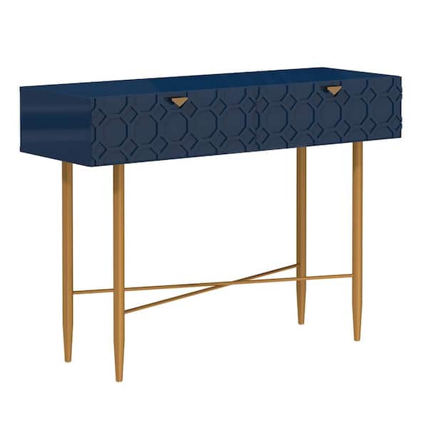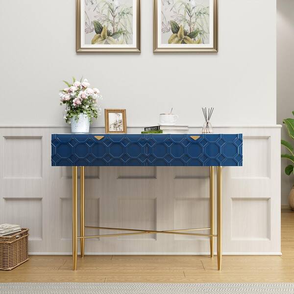 41.7 in. Blue Modern Wood Rectangular End Table with Metal Stand