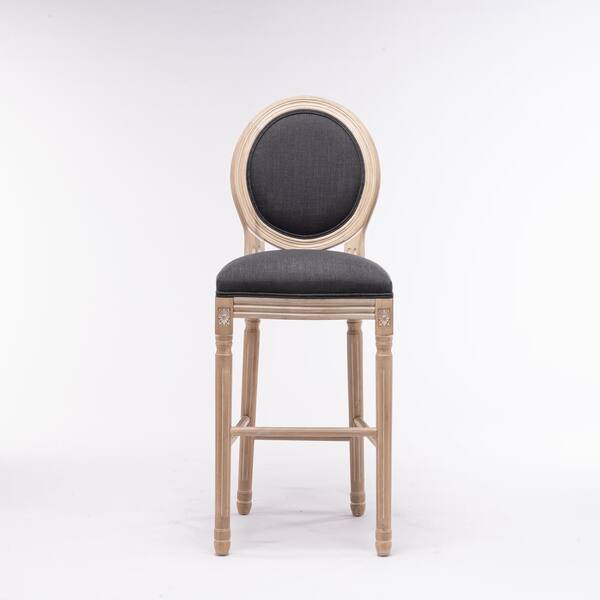 46.46 in. H Dark Gray French Country Wooden Bar Stools With Fabric Cushion Seating Set of 2
