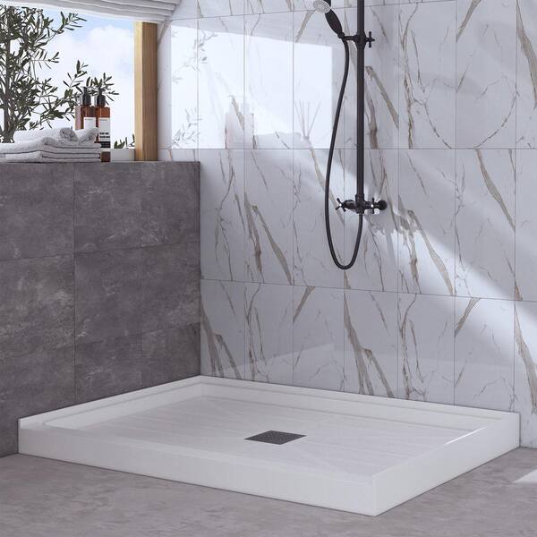48 in. L x 36 in. W Single Threshold Alcove Solid Surface Shower Pan Base with Centre Drain in White
