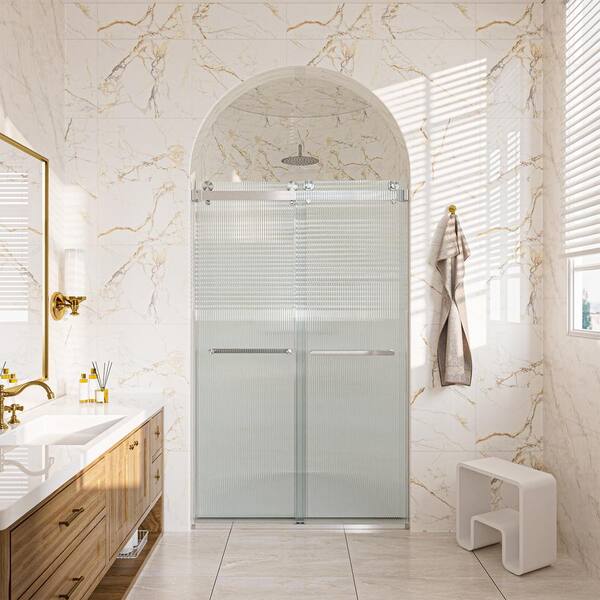 48 in. W x 76 in. H Framless Double Sliding Shower Door in Brushed Nickel with 3/8 in. (10 mm) Fluted Glass