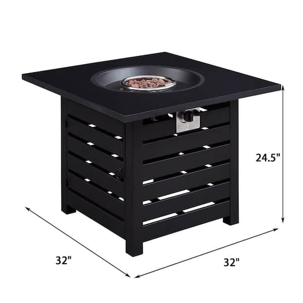 5-Piece HDPE Blue Adirondack Chairs with Cup Holder and 32 in. Square Metal Patio Fire Pit Table Set