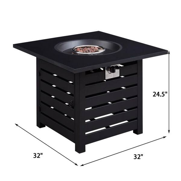 5-Piece HDPE Gray Adirondack Chairs with Cup Holder and 32 in. Square Metal Patio Fire Pit Table Set