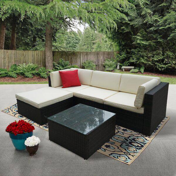 5-Piece Rattan Sectional Seating Group Wicker Outdoor Patio Conversation Furniture Set with Beige Cushions