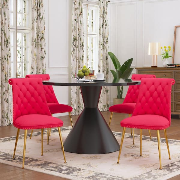 5-Piece Round Black MDF Top Table Set Seats 4 (4-Rose Dining Chairs)