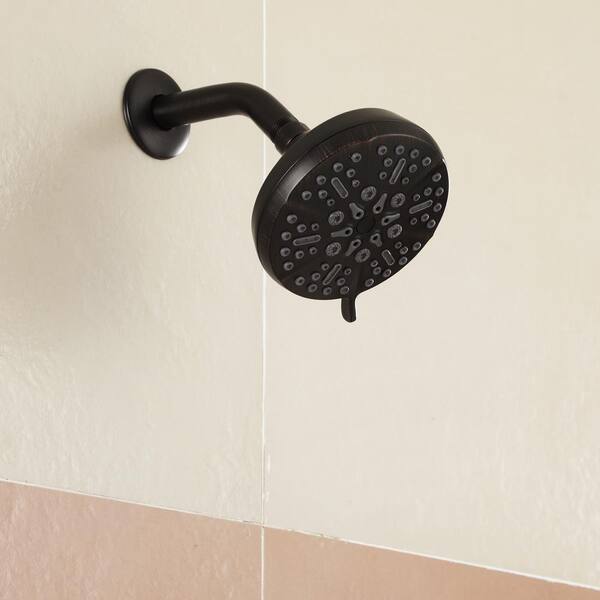 5-Spray Patterns 5 in. Wall Mount Fixed Shower Head with 2.5 GPM and Stainless Steel Shower Arm in Oil Rubbed Bronze