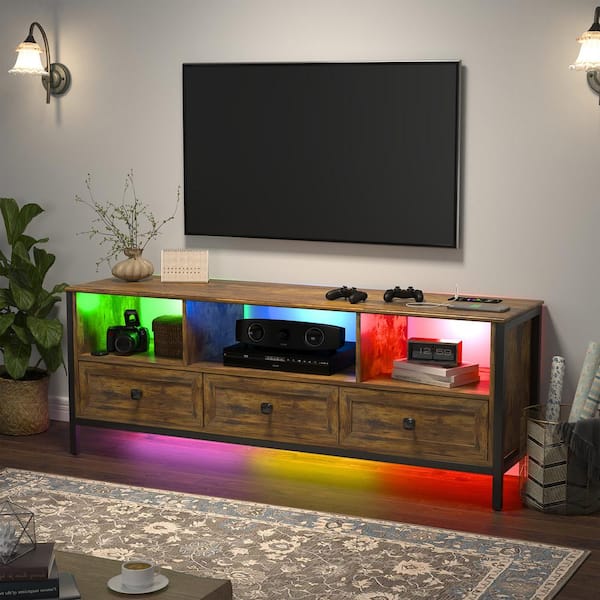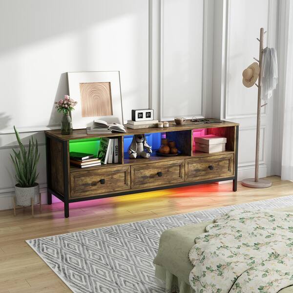 59 in. Brown TV Stand for TVs Up to 70 in. LED Entertainment Center with Drawers and Cabinet