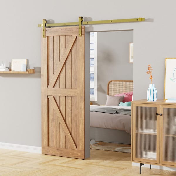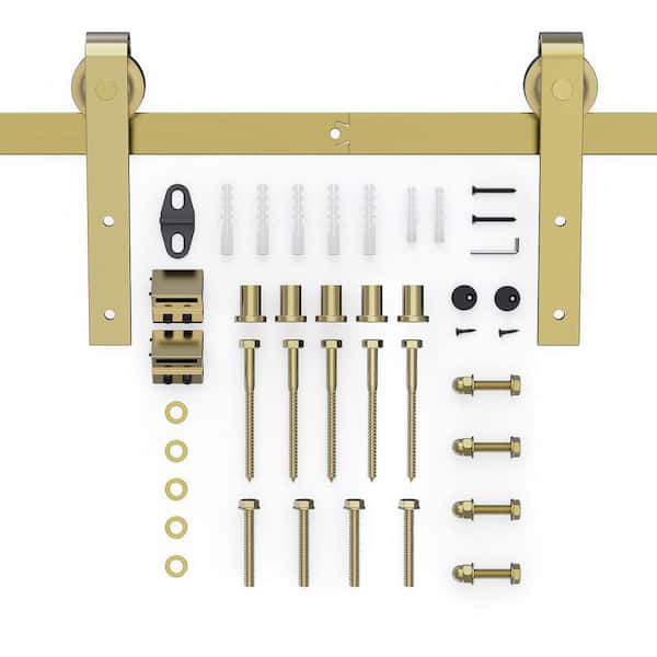 6.6 ft./79 in. Gold Sliding Barn Door Track and Hardware Kit with J-Shape Hanger For Single Door