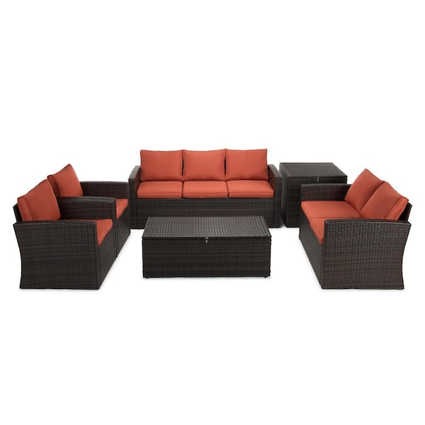 6-Piece Wicker Outdoor Patio Conversation Furniture Set with Cushions in Orange