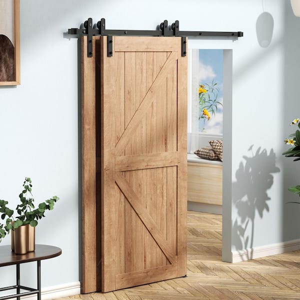6 ft./70 in. Double Track Bypass Sliding Barn Door Track and Hardware Kit with I-Shape Hanger for Double Doors