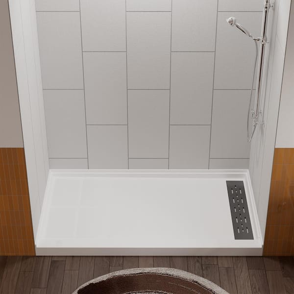 60 in. L x 36 in. W Single Threshold Alcove Solid Surface Shower Pan Base with Right Drain in White