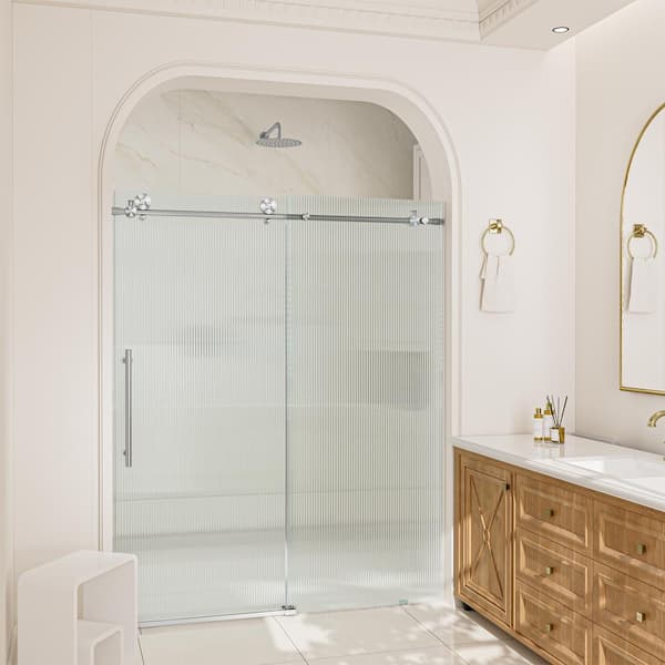 60 in. W x 76 in. H Framless Single Sliding Shower Door in Brushed Nickel with 3/8 in. (10mm) Fluted Glass