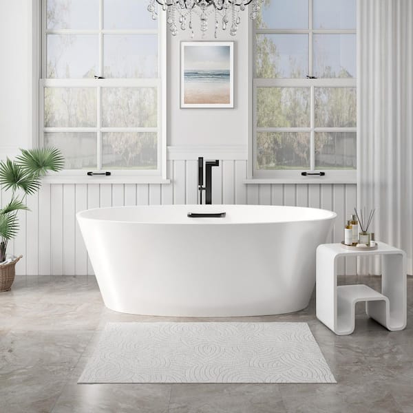 63 in. x 30 in. Soaking Bathtub with Center Drain and Black Side Grab Bar in Matte White