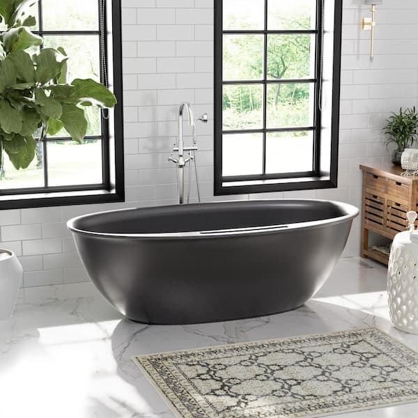 67 in. x 33 in. Solid Surface Stone Resin Freestanding Soaking Bathtub with Center Drain, Drainer, Hose in Matte Black