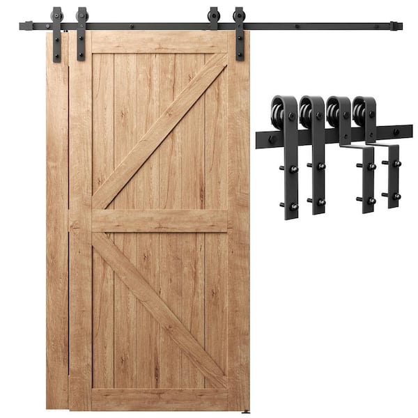 7.5 ft./90 in. Double Track Bypass Sliding Barn Door Track and Hardware Kit with J-Shape Hanger for Double Doors