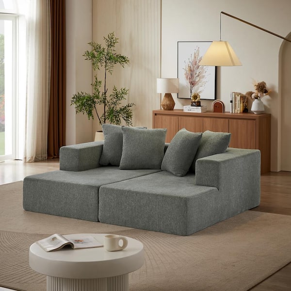 74 in. Wide Straight Arm Chenille Rectangle Minimalist Style Modular Sectional Sofa Set in. Gray with Fixed Cushions