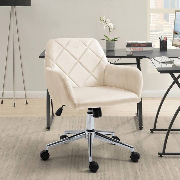 Beige Fashionable Velvet Task Chairs with 360°Swivel and Adjustable Height for Living Room or Bedroom