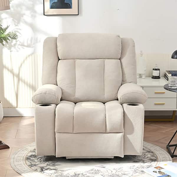 Beige Velvet Power Lift Recliner Chair with Extended Footrest, 2 Cup Holders and Remote Control